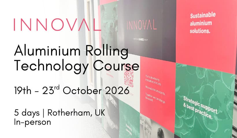 Aluminium Rolling Training Course – In-Person Professional Development19–23 October 2026 | Innoval Technology, Selden Way,…